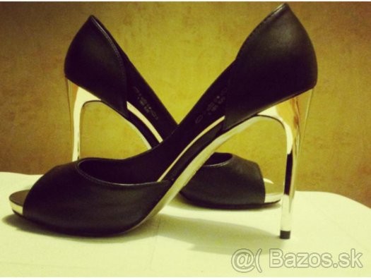 Predám čierno-zlaté nenosené, nové lodičky značky CATWALK veľkosť 38. Cena 29,99. +poštovné, podpätok je vysoký 11cm v prípade záujmu píšte mail na luciablack@zoznam.sk