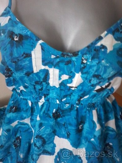 Krásna blúzka vhodná pre tehotné..M-L, predný diel všité záhyby, gumička pod prsiami, úzke nastaviteľné ramienka, spodný volánik, bočné nenápadné vrecká, 100% bavlnené plátienko, šírka prsia 2×45cm, dĺžka od pŕs bez ramienok 62cm, šírka cez bruško 2×85cm