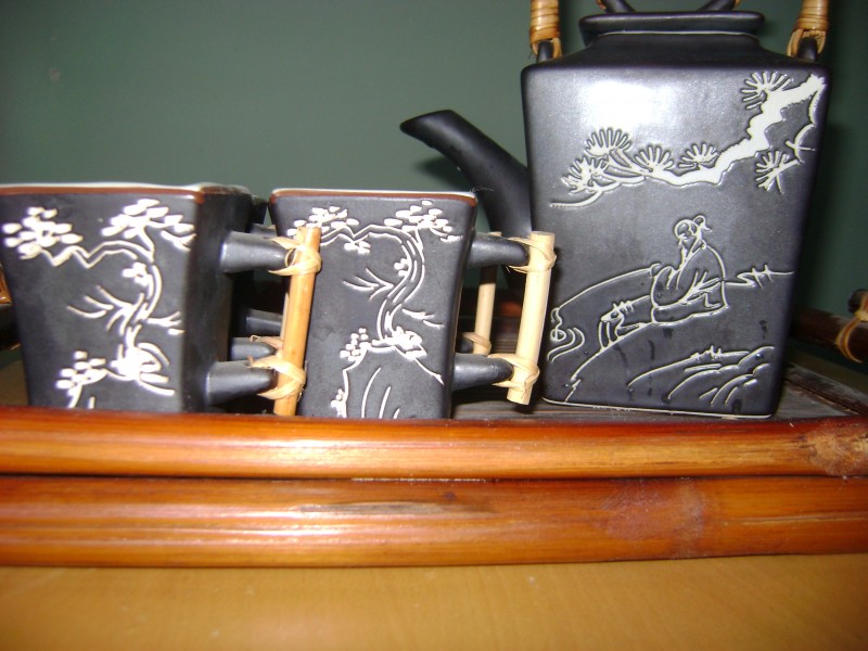 Predám krásny nepoužívaný čajový set (čajník, 6 šálok) s bambusovým podnosom.