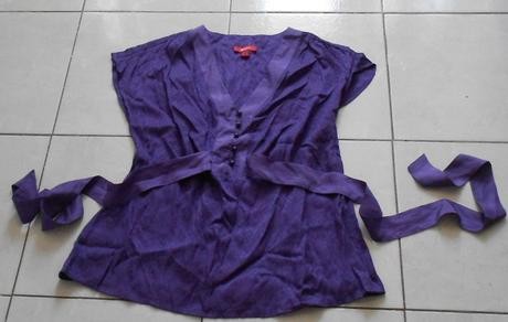 2./ predam fialovu bluzku, vzadu sa da zaviazat, bola asi 2x oblecena, dlzka : 65 cm, prsia : 52x2 cm, cena : 2 eur