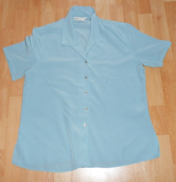 7./bluzka, oblecena asi 1x, strieborno-sivo-modra, satenova, dlzka : 67 cm, rukav : 24 cm, prsia : 56x2 cm, pisu velkost UK16, cena : 3 eur