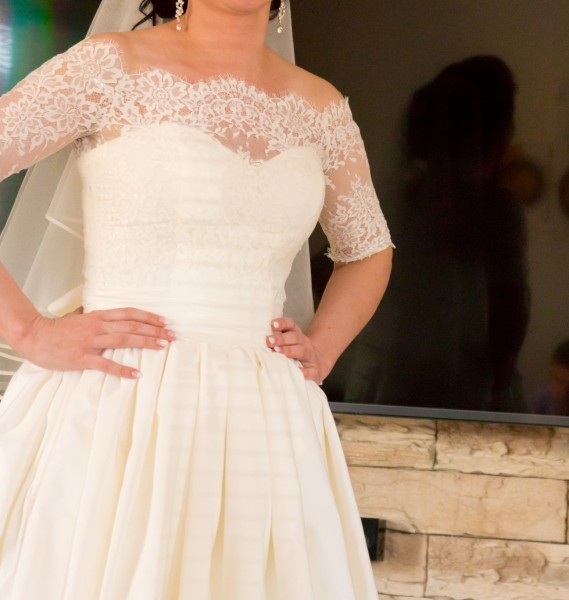 Predam krasne na mieru site svadobne saty vo farbe ivory. Korzet je krajkovy a sukna je z tvrdsieho az sustakoveho satenu. Saty maju vrecka. Na saty je este aj krajkove bolerko s 3/4 rukavmi so zapinanim vzadu. K satam patri aj zavoj a kruhova spodnicka. Velkost 38-42, vzadu na snurovanie, viac fotiek zaslem na poziadanie