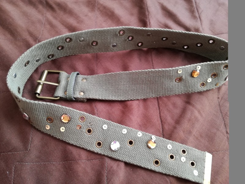 Predám zelený opasok s flitrami. Dlžka bez pracky je 100cm. Cena je bez poštovného.