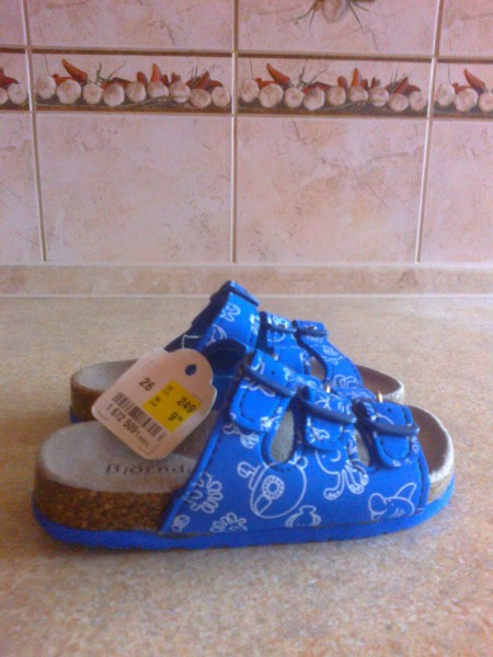 Predam nove detske slapky znacky BJÖRNDAL.Kupovane v Deichmanne.Nestihli sme ich vynosit.Su anatomicky tvarovane.Vel.25.Vnutorna dlzka:16.5cm.Cena:3€.Uprednostnujem osobny odber.Pri poslani platbu vopred na ucet.