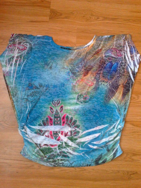 Predam volne padave tricko.Je zaujimave strihom aj sitim.Vzadu na krku aj pleciach je cipka.Po bokoch dole je nariasene.Vhodne je aj na plaz.Vel.L.Dlzka od pleca:73cm,sirka pod pazuchami:80cm.Cena:5.90€.Uprednostnujem osobny odber.Pri poslani platbu vopred na ucet.