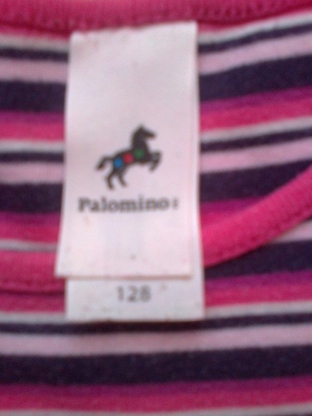 Predam tricko znacky Palomino.Vpredu je mala bodka od fixky a na rukave nebadana mala dierka zasita,vid.foto.Bolo oblecene zo 3-4 krat.Je nevytahane a nevyblednute.V skutocnosti su farby ziarivejsie.Vel.128.Dlzka od pleca:45cm,dlzka rukava od krku:51cm,sirka pod pazuchami:39cm.Cena:2.90€.Uprednostnujem osobny odber.Pri poslani platbu vopred na ucet.