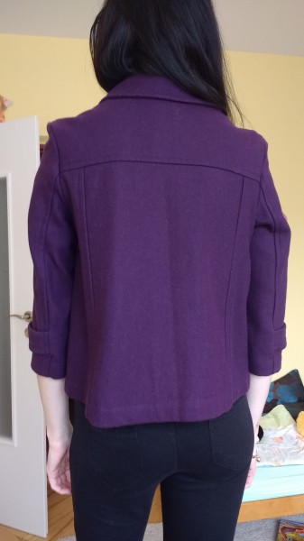 Krásny kabátik, 3/4 rukávy, strih voľný do pása - praktický(super do auta) pristane každej postave, veľkosť 12 cca40, výborný stav, hodí sa na jar, teplú jeseň...aj príležitosť, fialová farba