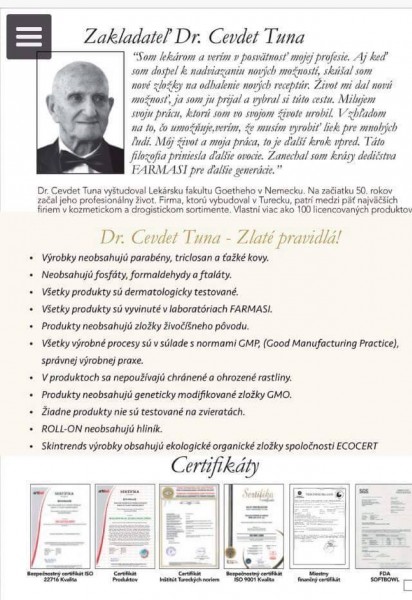 Všetky produkty boli vyrobené podľa receptúr Dr.C. Tunu.