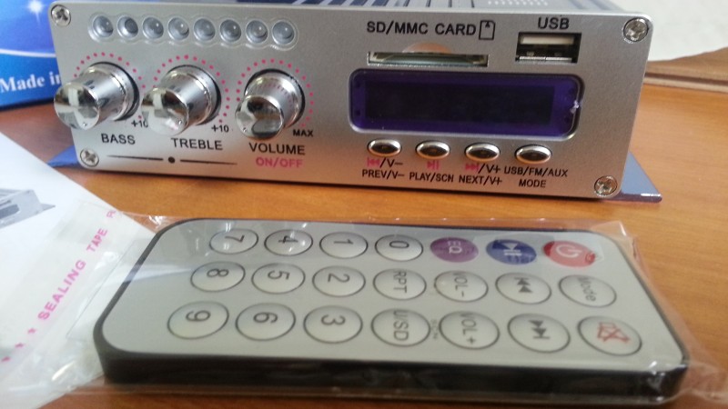 Predam multimedialny zosilnovac 2x20W s FM radiom, Bluetooth ,line in, MP3,AUX,USB,SD, novy nepouzity,napajanie 12V,dialkove ovladanie, vystup 4-16 ohm