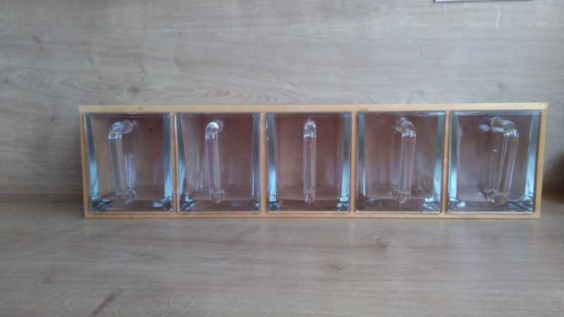 Na predaj su tieto kuchynske sufliky starej mamy z tvrdeneho skla v dreve na muku, sol, cukor, krupicu, struhanku. Su bez poskodenia, bez prasklinky, bez vystrbenia. Cena 95€. Osobny odber Bratislava popripade sa da dohodnut Trnava.