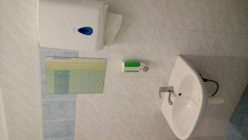 Na každom poschodí sa nachádzajú pánske a zvlášť dámske toalety a kuchynka s mikrovlnkou a drezom.