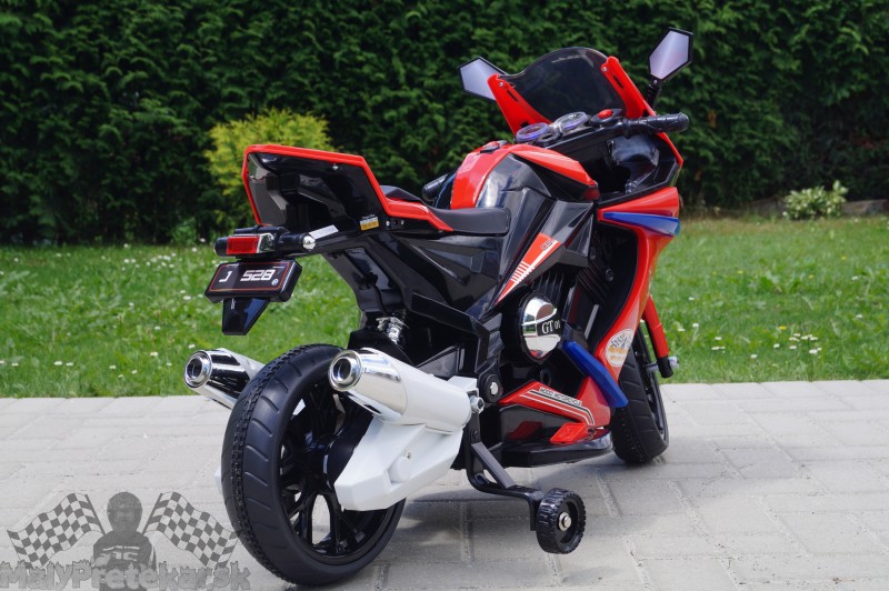Motorka má gumu na kolesách, čo znamená pohodlnú jazdu. Motorka má klaksón, svietia jej svetlá, hrá hudba. Je môžnosť pripojiť MP3, hlas hudby sa dá regulovať.