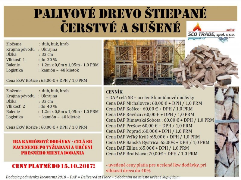 Cena DAP Prešov: 60,00 € + DPH / 1,0 PRM