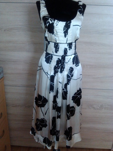 šaty krémovej farby s čiernými kvety,,,,, vel 40