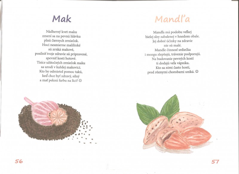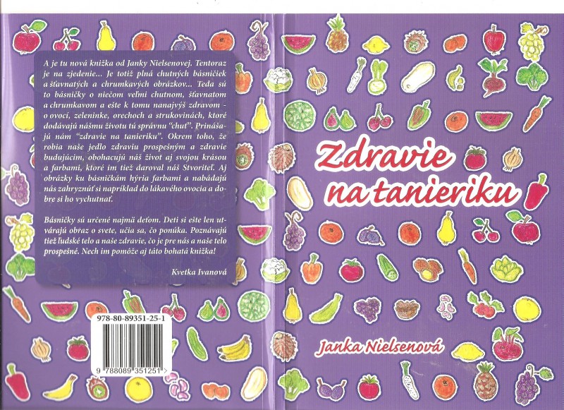 Bohato farebne ilustrovaná detská knižka, ktorá obsahuje krátke, veselé básničky o tom, čo je dobré pre zdravie, o ovocí, zeleninke, orieškoch, obilí, strukovinách, o ich zdravých účinkoch. Pomôže na ceste k zdraviu deťom i rodičom, starým rodičom... Veľkosť A5 a počet strán:76.