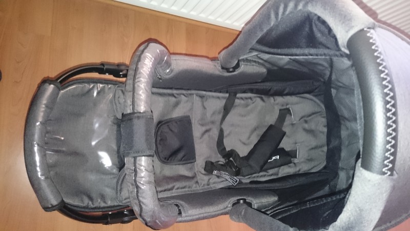 Predám trojkombináciu, ku všetkým častiam sú nánožníky, sieťka je aj zvlášť k vajíčku, igelit, časti sa dajú otáčať v oboch smeroch jazdy, pridám rukávnik na zimu a zavinovačku,na cene sa vieme dohodnúť
