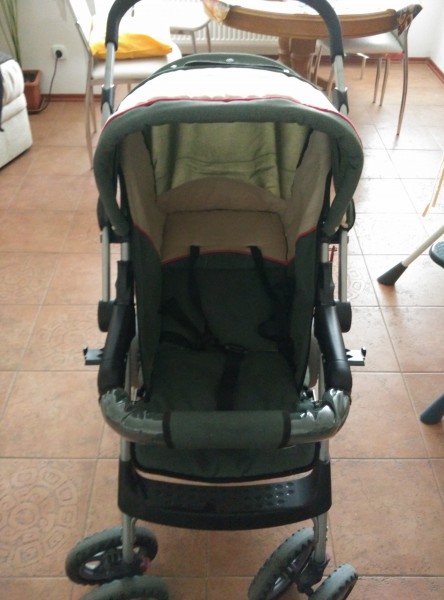 Predám športový kočík značky Steggi, farba zeleno béžová. Preklápacia rúčka, bezpečnostné pásy, otočné predné kolesá, polohovanie opierky do dvoch polôh, brzda, nánožník. Igelit proti dažďu je v cene. Poprosím len seriozny záujem a telefonický dohovor na uvedenom tel.čísle. Kočík je vo výbornom stave.