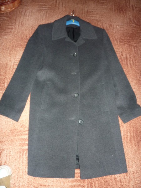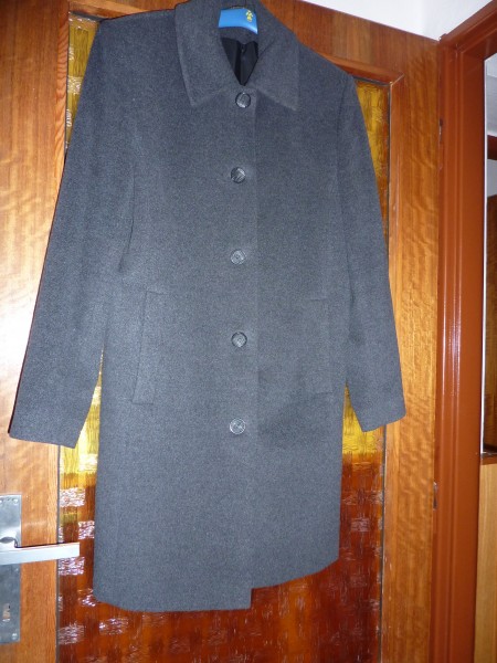 Predám flaušový dámsky kabát tmavošedej farby, rovný strih, veľmi malo nosený ,zachovalý,šitý na zákazku. Zapínanie na gombíky, na prednej časti dve vodorovné vrecka. Rozmery : šírka cez prsia 50cm, dĺžka meraná od krku je 94 cm, dĺžka rukáva od ramena 63 cm. Cena je 16€ + poštovné. V prípade záujmu ma kontaktujte na e-mail alebo mobil.
