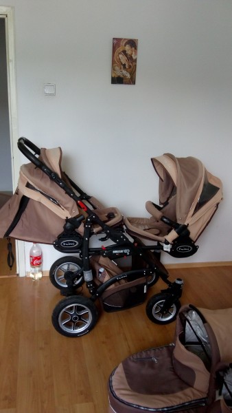 Predám kočík pre dvojičky trojkombinaciu.na športovej časti je trochu vyblednuta farba...nijak to neovplyvňuje funkčnosť kočíka...je k tomu aj pláštenka do dažďa a taška.sucastou je aj konštrukcia pre jedno dieťa...cena je 200 eur