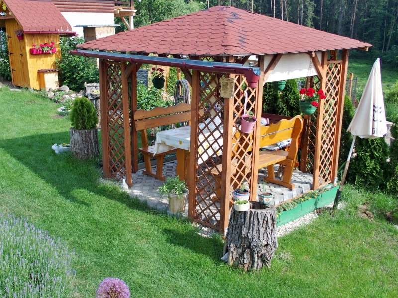 Chatka má veľkosť 20 m2 s jednou izbou, prekrytou terasou a kuchynkou s plynovým sporákom. Elektrika 230/12V – riešená solárnym panelom, úžitková voda na pozemku, pitná voda je spoločná- 50m od pozemku. Chatka je podpivničená. Na pozemku je aj altánok s posedením, vonkajšie WC.