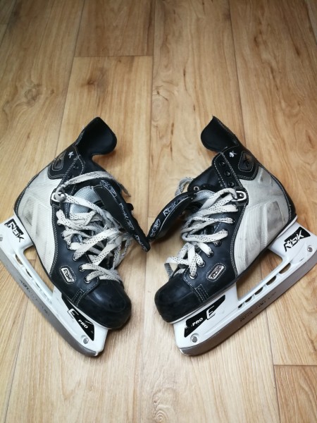 Hokejové korčule Rbk 4K vo veľmi dobrom stave, málo hrané. Veľkosť 9,5. Ideálne pre začínajúceho hráča.