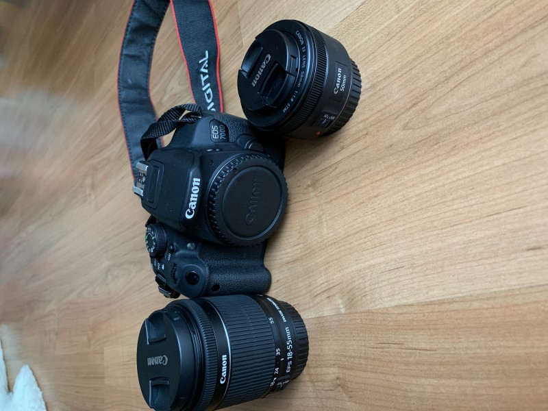 Predám 2ročnú zrkadlovku Canon 700D skoro vôbec nepoužívanú so základným oblektívom + portrétový objektív EF 50mm 1.8STM, na kt. je ešte záruka + ovládač na samospúšť.