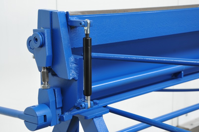 1. Plynová pružina, podporujúca zdvíhanie prítlačnej lišty, umožňuje plynulú reguláciu výšky zdvíhania. V závislosti na veľkosti má každá ohýbačka od 1 do 3 ks. na prítlačnej lište.