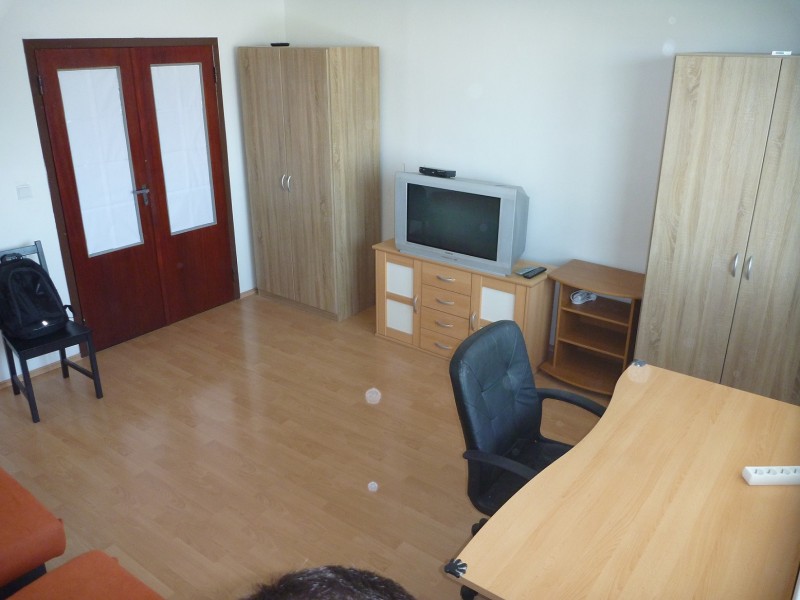 Izba je samostatna a nepriechodna iba pre 1 osobu. Byt je po uplnej rekonstrukcii:plastove okna, plavajuca podlaha, kupelna a WC. Byt je zariadeny: postel, skrine, pracka, chladnicka, stolik, nabytok. Byt je velky 4 izbovy, max. pocet osob v byte 4. Vyhodou je, ze kazdy ma svoju zmluvu, takze ked niekto z bytu odide, kazdy plati iba sam za seba.