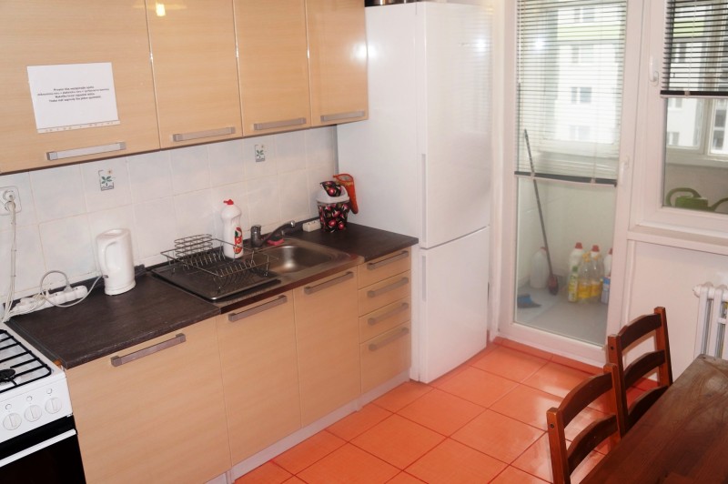 Izba je samostatna a nepriechodna iba pre 1 osobu. Byt je po uplnej rekonstrukcii:plastove okna, plavajuca podlaha, kupelna a WC. Byt je zariadeny: postel, skrine, pracka, chladnicka, stolik, nabytok. Byt je velky 4 izbovy, max. pocet osob v byte 4. Vyhodou je, ze kazdy ma svoju zmluvu, takze ked niekto z bytu odide, kazdy plati iba sam za seba.