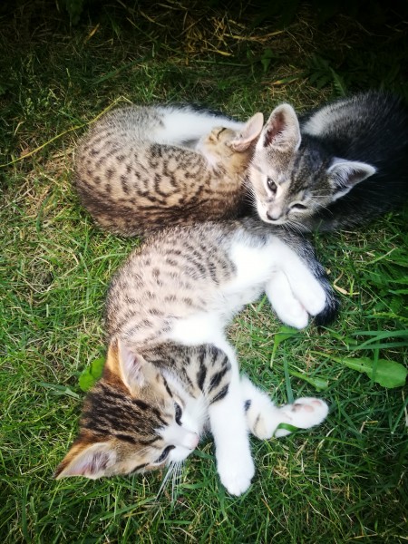 Darujem 3 mačiatka, majú 2 mesiace, vhodné do bytu aj do záhrady. Dve sú bielo strakaté s modrými očami, jedno je sivé.
