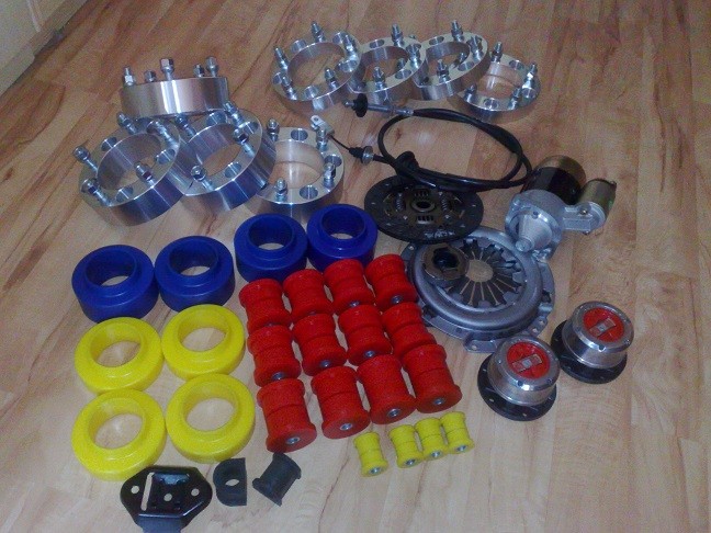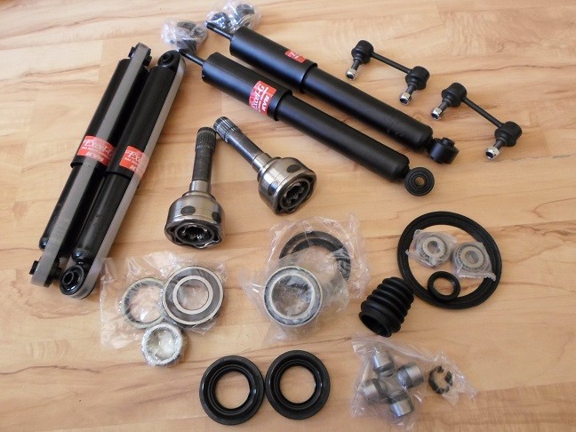 Predám na Suzuki Jimny nové náhradné diely tesnenia motora, filtre, sviečky, sviečkové káble, rozvod motora s vodnou pumpou, guferá, čerpadlo paliva, rôzne čidlá, brzdové kotúče, platničky, obloženia, valčeky, brzdové lanká, opravné sady strmeňov, homokinetické kĺby, kardánové kríže, stabilizačné tyčky, čapy riadenia, ložiská do náboja predné, zadné, opravná sada na zvislé čapy. Tlmiče predné zadné, možnosť objednania pružín. Komplet spojku, spojkové lanko na Suzuki Jimny, štartér, rozširovacie podložky, olej, pneumatiky