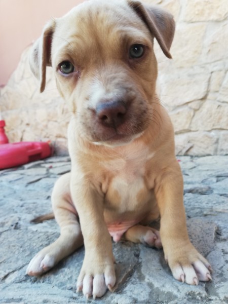 Predám šteniatka staffordshire.Očkované odcervene. Jedna sučka s nezvyčajným okom jedno má modré druhé hnedé. A dvaja psy svetlo hnedý tiež s modrým očkom,druhy je tmavohnedy. Kontak len vážny záujemcovia. Dvaja psy 130e a sučka 150.