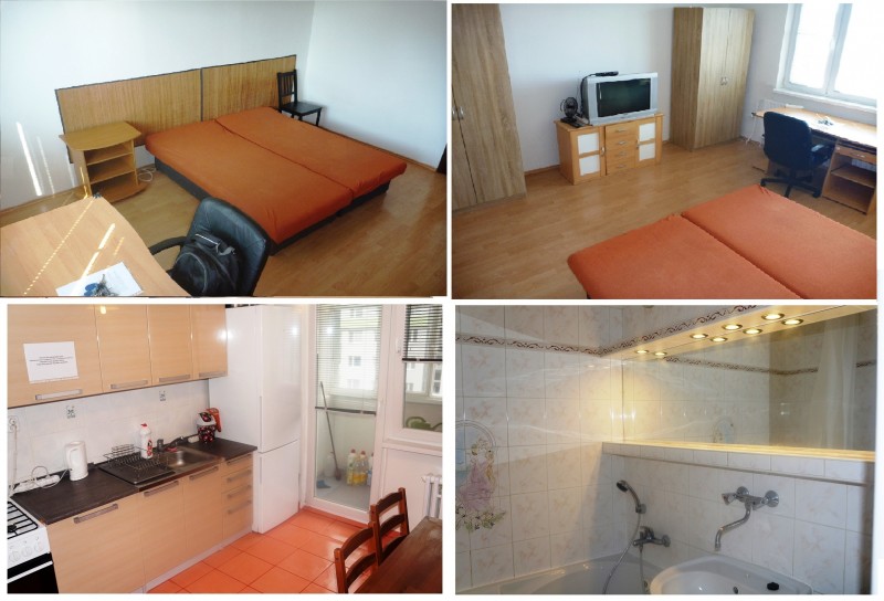 Izba je samostatna a nepriechodna iba pre 1 osobu. Byt je po uplnej rekonstrukcii:plastove okna, plavajuca podlaha, kupelna a WC. Byt je zariadeny: postel, skrine, pracka, chladnicka, stolik, nabytok. Byt je velky 4 izbovy, max. pocet osob v byte 4. Vyhodou je, ze kazdy ma svoju zmluvu, takze ked niekto z bytu odide, kazdy plati iba sam za seba.