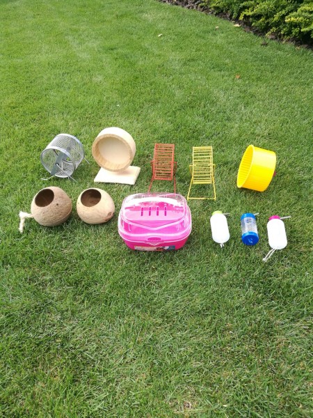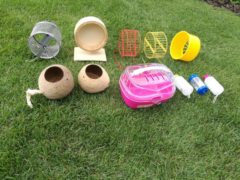 (kolieska rôznych druhov a veľkostí, napájadlá, prenosný box, kokosové domčeky atď. viď obrázky).