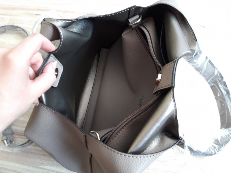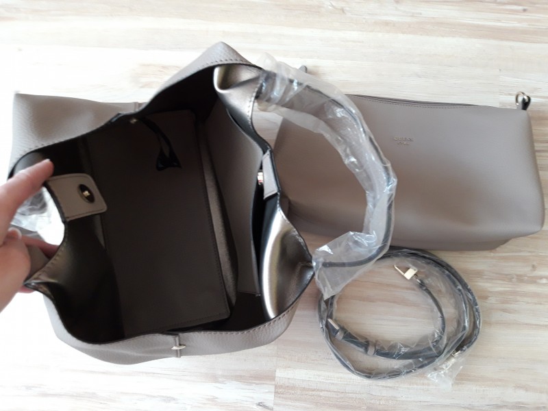 Vo vnútri sa nachádza menšia kabelka, ktorá sa dá vybrať a nosiť ako menšiu cross body kabelku. Nastaviteľné dlhé ramienko + ochranné vrecko(dustbag). Pôvodné vysačky. Rozmery: 26x33x17 (výška x dlžka x šírka).