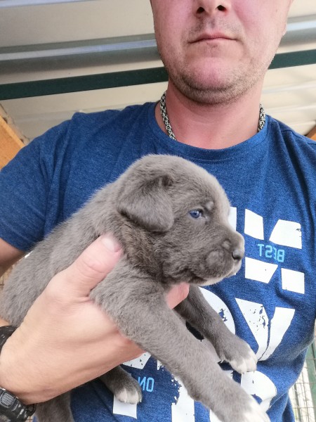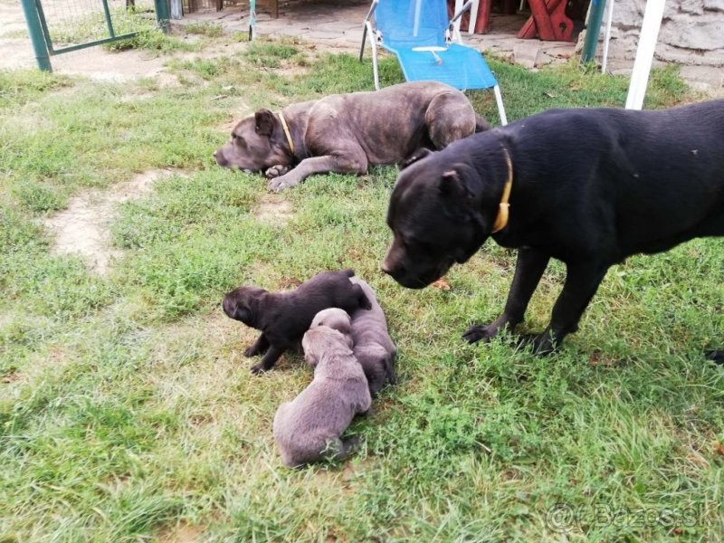 Ponúkam na predaj čistokrvné šteniatka Cane Corso, 2 psíky modrej farby.Jedna fenka modrá, 1psík čiernej farby rezervovaný.Otec šteniatok je mohutný, modrý, žíhaný. Matka je čisto čierna. Obidva sú v našom vlastníctve.Šteniatka budú odčervené, zaočkované s veterinárnym preukazom.Možný odber začiatkom októbra