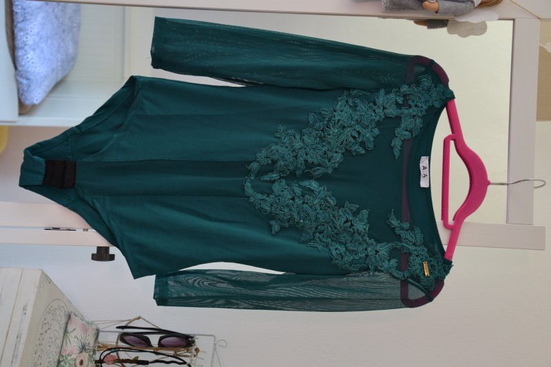 Elegantné značkové body, ktoré sa hodí na stužkovú, ples alebo inú slávnostnú akciu. Body je veľmi elastické, čiže sa krásne prispôsobí vašej postave a sedí veľkostiam 36-40. Tri štvrťové rukávy a pás cez hrudník vpredu je transparentný. Materiál je príjemný, dobre sa v ňom pohybuje a dá sa nosiť s podprsenkou alebo bez. V kombinácií s jednofarebnou sukňou vytvoríte slávnostný outfit. Body bolo jedenkrát oblečené, je v top stave.
