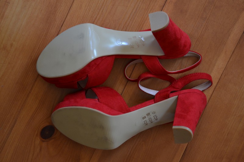Nové sandále červenej farby na hrubom podpätku. Veľkosť 40. Na nohe sú pohodlné vďaka platforme. Sú vo výbornom stave, dokonca ešte s nálepkami.