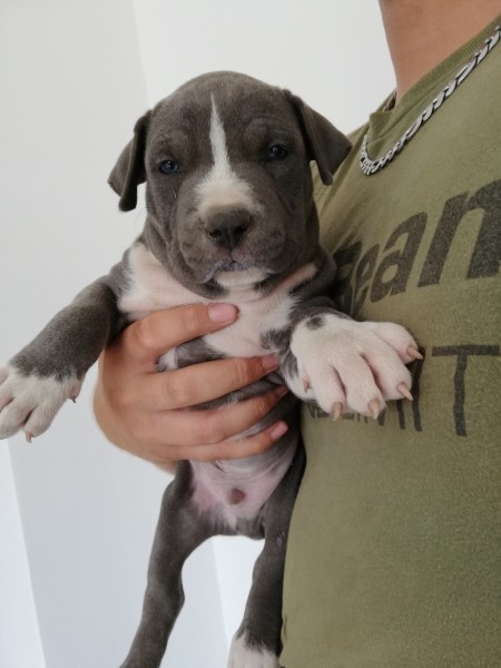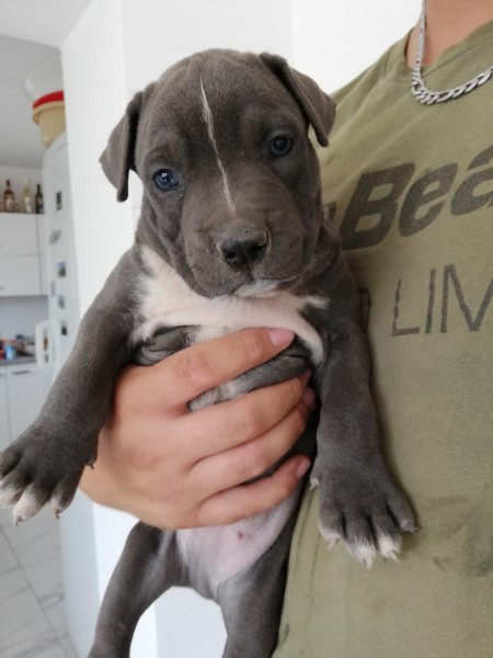 Ponúkam na predaj šteniatka amerického stafforda modrej farby narodené 1.8.2019. 6 psíkov 4 sučky. 2X odčervené a 1x zaočkované. Šteniatka už sami jedia granule