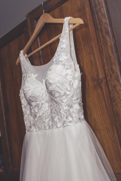Predám svadobné šaty.Vrch je snehovo biely,sukňa ivory s trblietkami.Trblietky na fotkách nie je vidieť.Veľkosť je S/M. Sú na zips a na šnurovačku.Pridám k nim kruh a závoj,na ktorom su olemované 3 D kvietinky. Som prvá majiteľka a sú vyčistené v čistiarni.