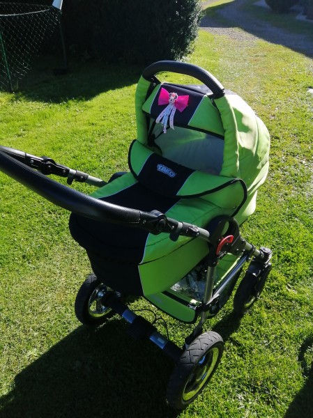 Kočík TAKO Jumper vo veľmi dobrom stave. Hlboká vanička, športová časť používaná asi 3x, vajíčko, taška, sieťka proti hmyzu, pláštenka a plachta do vaničky v zelenej farbe.