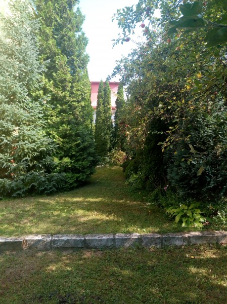 Záhrada má rozlohu vrátane zástavby 496m2, stojí na nej skleník, okrasné a ovocné stromy a kríky.