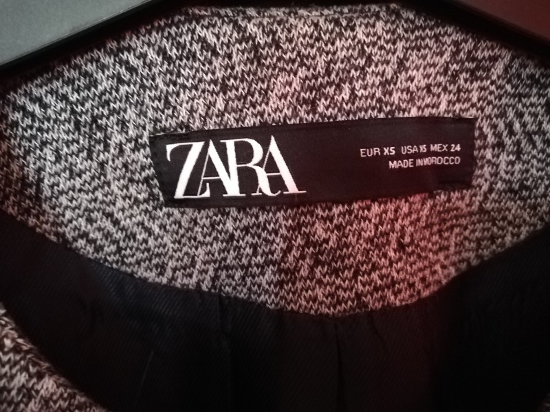 Predám kabátik značky ZARA oblečený 2 krát. Veľkosť 34 XS.