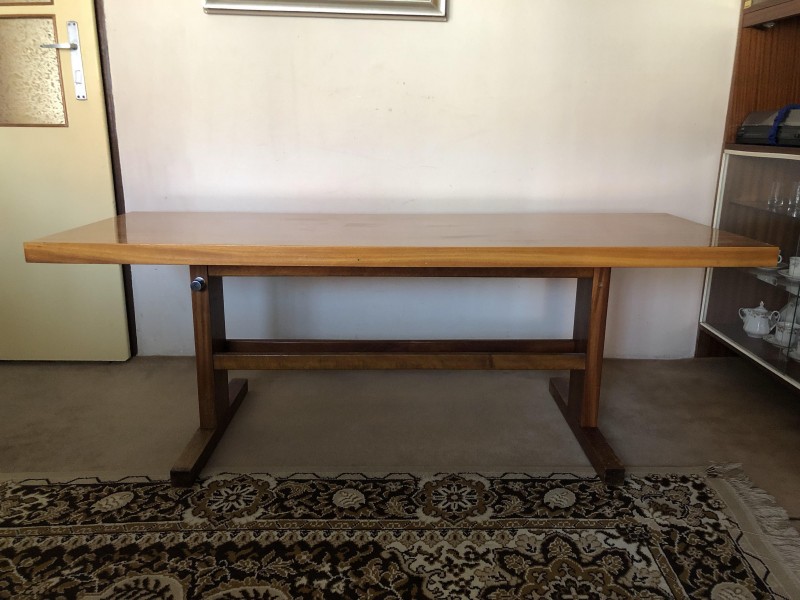 Predám mahagónový vysoko leštený konferenčný stolík 160x60 cm, výška 60 -75 cm. Stôl je vysúvací
