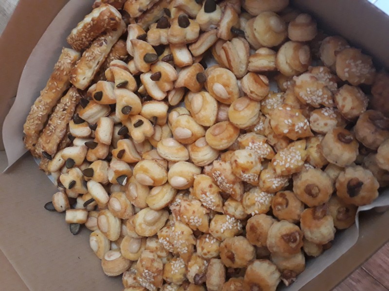 Ponúkam mix drobného slaného pečiva 1 kg za 13,- eur. Mix sa skladá z 5 druhov slaného pečiva : korenisté pagáčiky s vlašským orechom, smotanovo-syrové lístky, slané slzičky s mandľou, bryndzové srdiečka s tekvicovým jadierkom, jogurtové tyčinky. V prípade záujmu posielam aj formou expres zásielky.