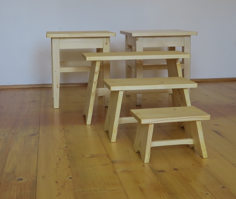 Ponúkam stoličky bez operadla z masívu smrek. Povrchová úprava prírodný olej. Môžete si zvoliť s ponuky