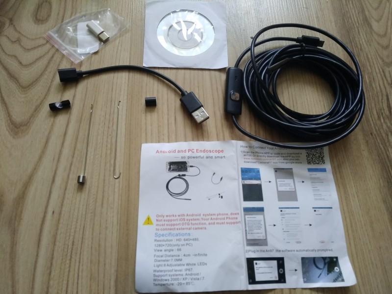 Vodeodolná IP67 endoskopická kamera pre PC alebo Mobil (android), dĺžka 5m