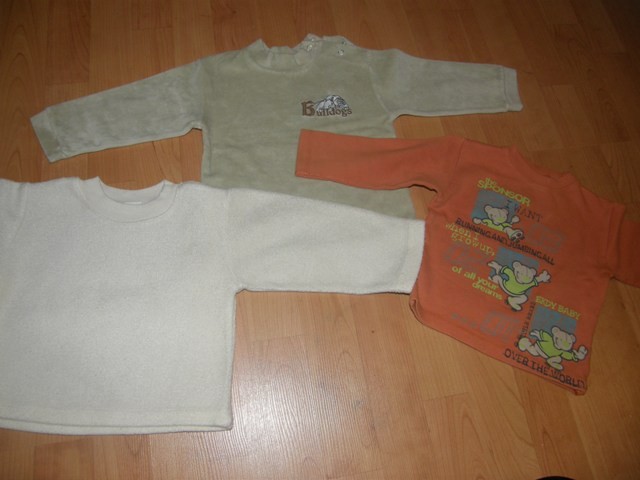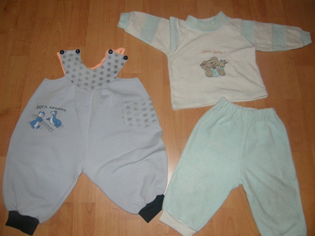 ponukam balik oblecka,uz nie je kompletny.. je tam viac veci v. 80 a zo 2-3 vo v. 86....su tam 2x nohavice - 12 m / jedny na traky/ , body, teplaky v. 86 , tepl. suprava v. 80, mikinky, 2 supravky . ..darujem este jedny teplaky .... predaj aj jednotlivo...cena dohodou, prip. moznost vyberu podla Vas /