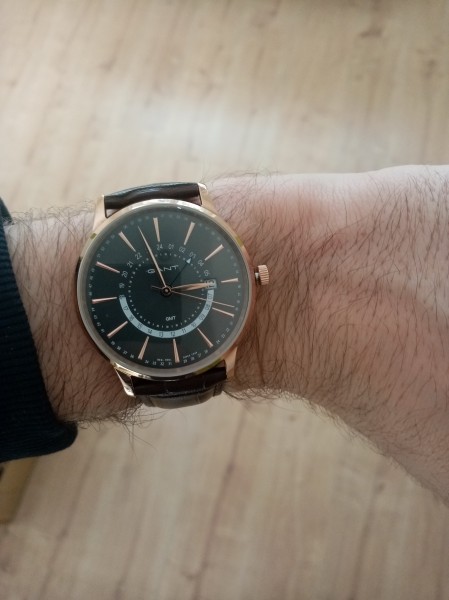 Okrúhly ciferník (priemer 43 mm) je zdobený 3 chronografmi, dátumovníkom a logom Emporio Armani.
