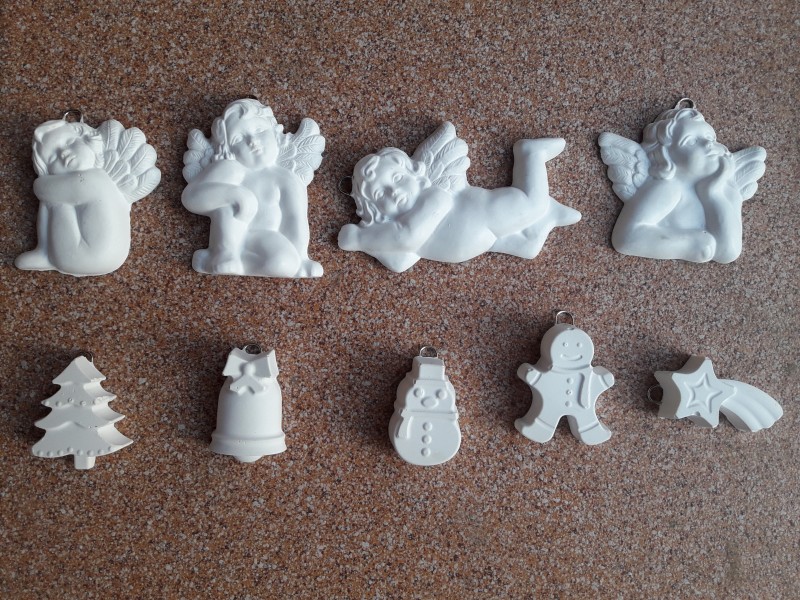 Predám sadrové vianočné ozdoby (anjelikov ,stromček ,snehuliak ,kométa ...)